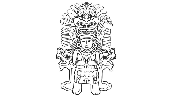 My tattoos are collected on my travels, similar to receiving passport stamps. This image was assembled after a tour of Mexico using photographs from the ancient sites and museums I visited. I like to take the best bits that I find and create something new rather than copy an existing image. The priests headdress features a Condor on top of a Jaguar.