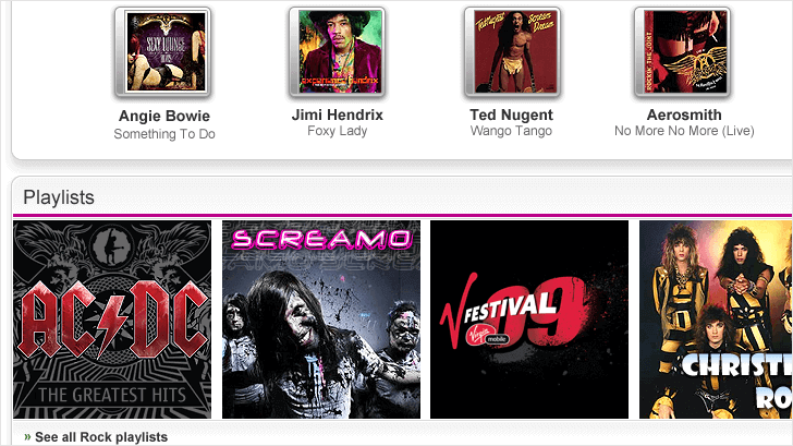 Playlists, albums, singles and top charts could be played or downloaded.